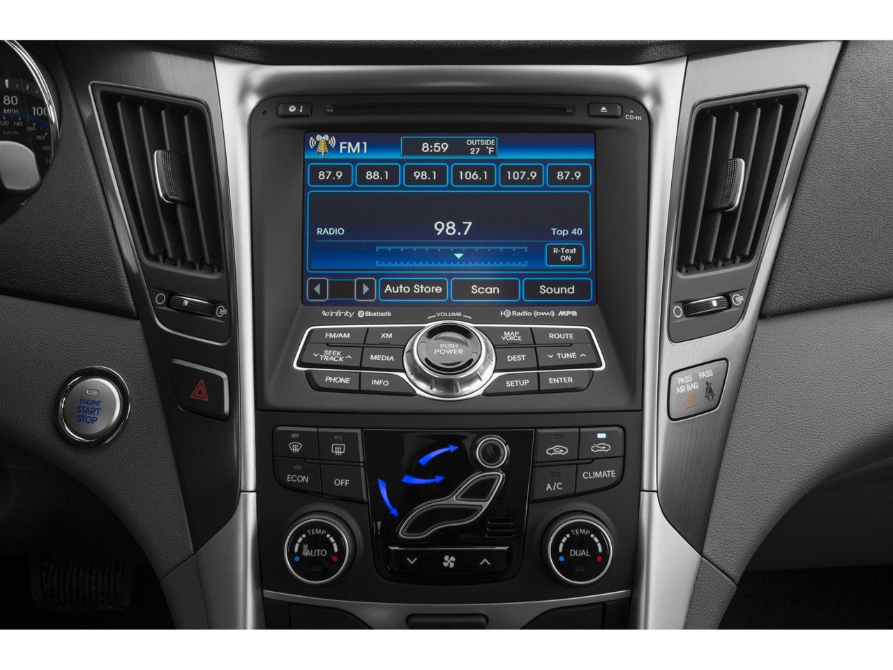 With Options Like Premium Package (Glossy DLO Surround & Outside Mirror Housing, Panoramic Sunroof, and Radio: AM/FM/SiriusXM/CD/MP3 w/Navigation), 2.4L 4-Cylinder Atkinson-Cycle Hybrid, 17 x 6.5J Eco-Spoke Aluminum Alloy Wheels, 4-Wheel Disc Brakes, 6 Speakers, ABS brakes, Air Conditioning, Alloy wheels, AM/FM radio: SiriusXM, Anti-whiplash front head restraints, Auto-dimming Rear-View mirror, Automatic temperature control, Brake assist, Bumpers: body-color, Cargo Mat, Cargo Net, Carpeted Floor Mats, CD player, Compass, Delay-off headlights, Driver door bin, Driver vanity mirror, Dual front impact airbags, Dual front side impact airbags, Electronic Stability Control, Emergency communication system: Blue Link, Exterior Parking Camera Rear, First Aid Kit, Four wheel independent suspension, Front anti-roll bar, Front Bucket Seats, Front Center Armrest w/Storage, Front dual zone A/C, Front fog lights, Front reading lights, Fully automatic headlights, Garage door transmitter: HomeLink, Heated door mirrors, Heated Front Bucket Seats, Heated front seats, Illuminated entry, Leather Seating Surfaces, Leather steering wheel, Low tire pressure warning, Occupant sensing airbag, Option Group 02, Outside temperature display, Overhead airbag, Overhead console, Panic alarm, Passenger door bin, Passenger vanity mirror, Power door mirrors, Power driver seat, Power steering, Power windows, Radio: AM/FM/SiriusXM/CD/MP3 Audio System, Rear anti-roll bar, Rear seat center armrest, Rear window defroster, Remote keyless entry, Security system, Speed control, Speed-sensing steering, Speed-Sensitive Wipers, Steering wheel mounted audio controls, Telescoping steering wheel, Tilt steering wheel, Traction control, Trip computer, Turn signal indicator mirrors, and Variably intermittent wipers. Recent Arrival! BACKUP CAMERA, Bluetooth®, Hands-Free, 2.4L 4-Cylinder Atkinson-Cycle Hybrid, 17 x 6.5J Eco-Spoke Aluminum Alloy Wheels, 4-Wheel Disc Brakes, 6 Speakers, ABS brakes, Air Conditioning, Alloy wheels, AM/FM radio: SiriusXM, Anti-whiplash front head restraints, Auto-dimming Rear-View mirror, Automatic temperature control, Brake assist, Bumpers: body-color, Cargo Mat, Cargo Net, Carpeted Floor Mats, CD player, Compass, Delay-off headlights, Driver door bin, Driver vanity mirror, Dual front impact airbags, Dual front side impact airbags, Electronic Stability Control, Emergency communication system: Blue Link, Exterior Parking Camera Rear, First Aid Kit, Four wheel independent suspension, Front anti-roll bar, Front Bucket Seats, Front Center Armrest w/Storage, Front dual zone A/C, Front fog lights, Front reading lights, Fully automatic headlights, Garage door transmitter: HomeLink, Glossy DLO Surround & Outside Mirror Housing, Heated door mirrors, Heated Front Bucket Seats, Heated front seats, Illuminated entry, Leather Seating Surfaces, Leather steering wheel, Low tire pressure warning, Occupant sensing airbag, Option Group 02, Outside temperature display, Overhead airbag, Overhead console, Panic alarm, Panoramic Sunroof, Passenger door bin, Passenger vanity mirror, Power door mirrors, Power driver seat, Power steering, Power windows, Premium Package, Radio: AM/FM/SiriusXM/CD/MP3 Audio System, Radio: AM/FM/SiriusXM/CD/MP3 w/Navigation, Rear anti-roll bar, Rear seat center armrest, Rear window defroster, Remote keyless entry, Security system, Speed control, Speed-sensing steering, Speed-Sensitive Wipers, Steering wheel mounted audio controls, Telescoping steering wheel, Tilt steering wheel, Traction control, Trip computer, Turn signal indicator mirrors, Variably intermittent wipers, 2.4L 4-Cylinder Atkinson-Cycle Hybrid.