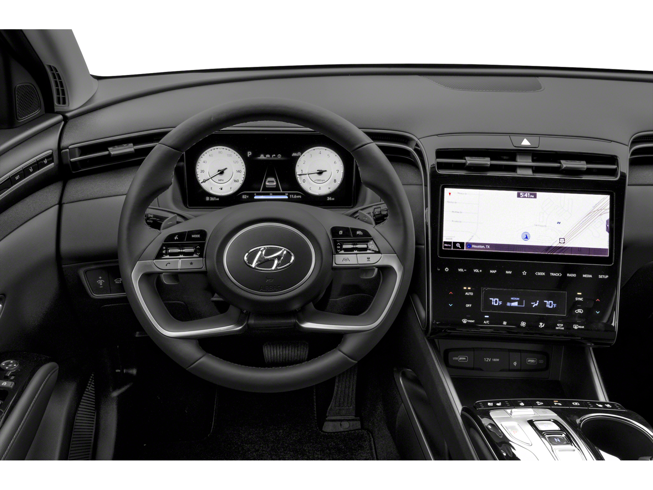 The Tucson's interior is a true sanctuary, with Leather Seating, Heated and Ventilated Front Seats, and a Heated Steering Wheel that provide unparalleled comfort. The Bose Premium Audio System will immerse you in your favorite tunes, while the Automatic Climate Control ensures a perfect cabin environment.
