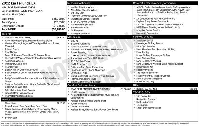 Don't miss out on this exceptional 2022 Kia Telluride LX. This SUV is a true testament to Kia's commitment to quality, innovation, and customer satisfaction. Schedule a test drive today and discover the difference the Telluride LX can make in your driving experience.