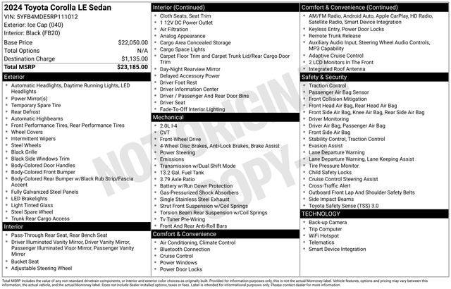 We invite you to visit our showroom and experience the Corolla LE for yourself. Our knowledgeable sales team is here to answer any questions you may have and help you find the perfect vehicle to fit your lifestyle. Don't miss the opportunity to make the 2024 Toyota Corolla LE your next trusted companion on the road.